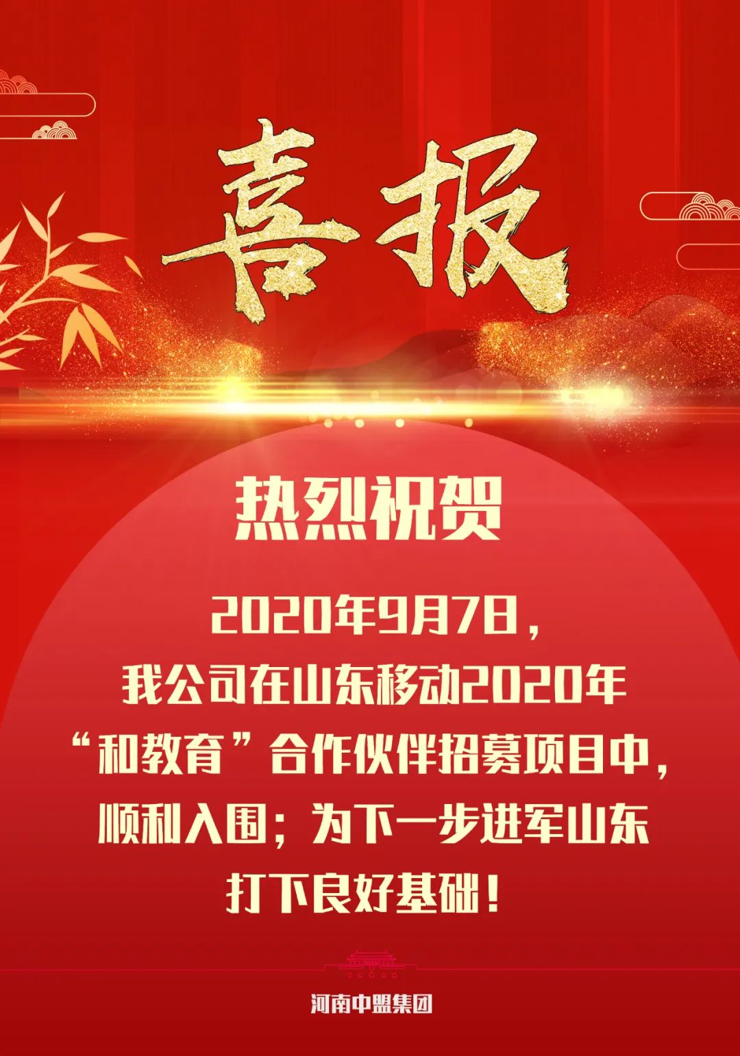 2020年9月7日,我公司在山東移動(dòng)“和教育”合作伙伴招募項(xiàng)目中,憑借過(guò)硬的產(chǎn)品質(zhì)量,扎實(shí)高效的工作作風(fēng),卓越的運(yùn)作團(tuán)隊(duì)和良好的商業(yè)信譽(yù),順利入圍。